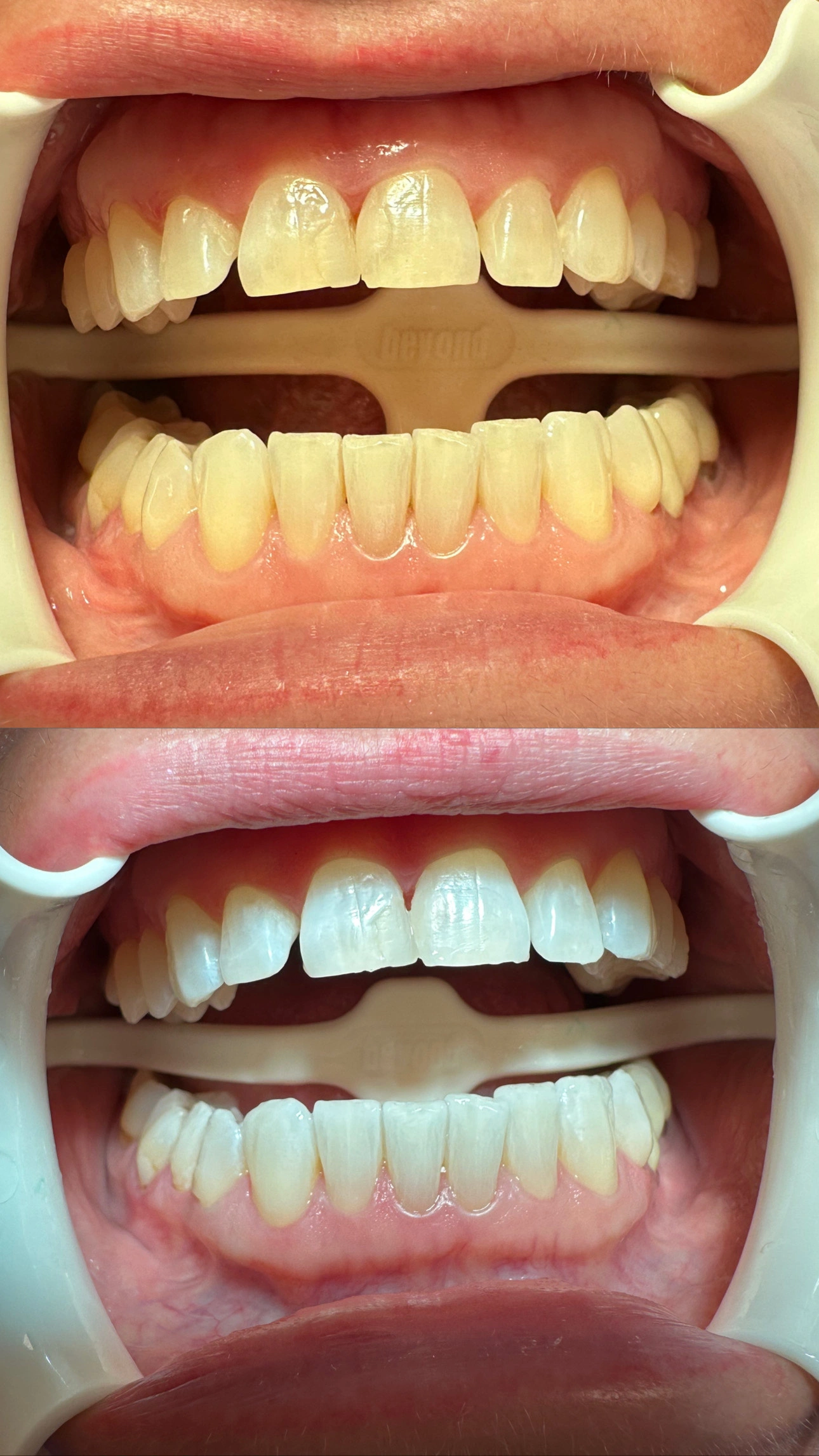 Teeth whitening is a quick and effective way to achieve a fresher, brighter smile. Over the years, tooth color can naturally darken, especially due to coffee, tea, red wine, or smoking. During the treatment, the enamel is lightened using safe, professional materials while protecting the health of the teeth and gums. The results are clearly visible even after a single session and can be maintained for a long time with proper care.
