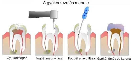 The process of root canal treatment: Before starting the procedure, the tooth is anesthetized. The first step in root canal treatment is to remove damaged, infected areas of dental tissue and create a cavity in the tooth that will provide access to the root canals. Then the inflamed pulp (nerve) and infected tissues are removed from the root canals, while the canals are also subjected to chemical disinfection.